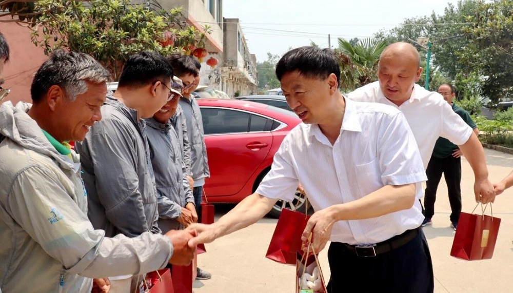 夏日炎炎、驕陽似火。帶著對(duì)一線職工的牽掛,7月14日,蘇墾農(nóng)發(fā)黨委副書記、工會(huì)主席倪志愿一行到蘇墾農(nóng)發(fā)宿遷分公司開展“送清涼”、“送安全”走訪慰問活動(dòng),看望奮戰(zhàn)高溫的一線管理人員,宿遷分公司相關(guān)領(lǐng)導(dǎo)陪同。