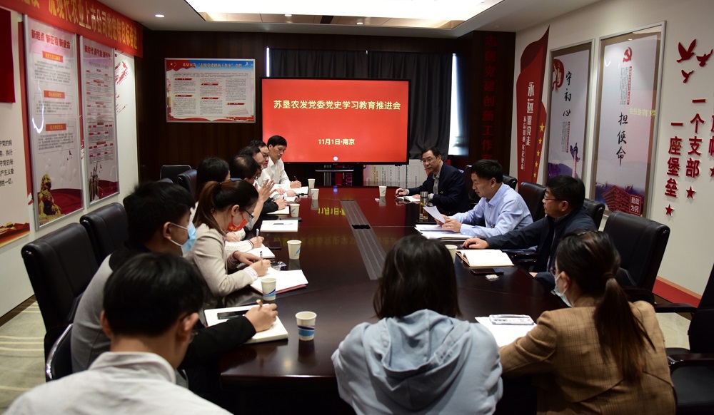 11月1日,蘇墾農發召開黨史學習教育推進會,貫徹落實集團公司黨史學習教育領導小組有關要求,認真落實黨史學習教育各項任務,聚焦主題、迅速行動、有力部署,深入推進黨史學習教育走深走實。蘇墾農發黨委副書記、工會主席倪志愿主持會議并講話。