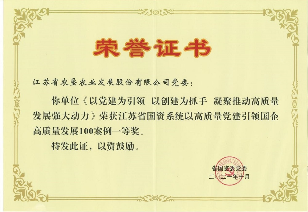 近日,由蘇墾農發黨委報送的《以黨建為引領 以創建為抓手 凝聚推動高質量發展強大動力》榮獲“江蘇省國資系統以高質量黨建引領國企高質量發展100案例”一等獎;《“爭創紅旗黨支部”激發基層組織新活力》在集團黨建工作“創典型、創品牌、創特色”案例評選中榮獲一等獎。這些榮譽的獲得充分肯定了近年來農發公司黨委理論學習中心組學習所取得的積極成效。