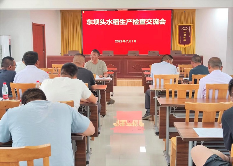 檢查結束后,東壩頭立即召開了水稻生產檢查交流會,所有參加檢查的人員就檢查田塊的品種、播期、施肥、化除等基本生產情況進行了評價交流,認真聽取在場人員提出的相關建議。最后,浦東同志根據農發總部種植業管理中心《2022年水稻栽后管理生產檢查情況通報》文件精神,結合當前檢查的實際情況進行分析評價,并提出相關要求:一是抓好水層管理,促進淺水處分蘗;二是加快施肥節奏,減輕田間雜草防除壓力;三是繼續跟進查苗補缺工作,為東壩頭水稻超高產打下堅實基礎;四是堅持“藥肥雙減”,嚴格按照《東壩頭農情》麥稻操作規程用藥,確保稻米質量安全;五是農業中心要加強病蟲草害預測預報,科學制定防治策略,提高綜合防治效果。