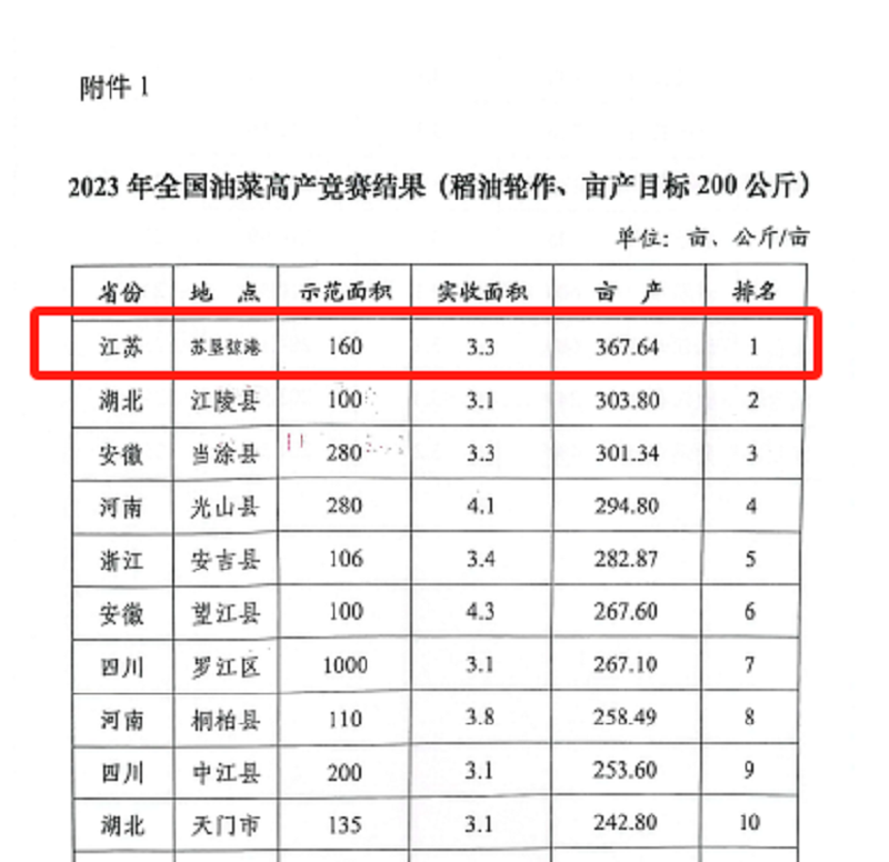 喜報!蘇墾農發榮獲全國油菜高產競賽第一名