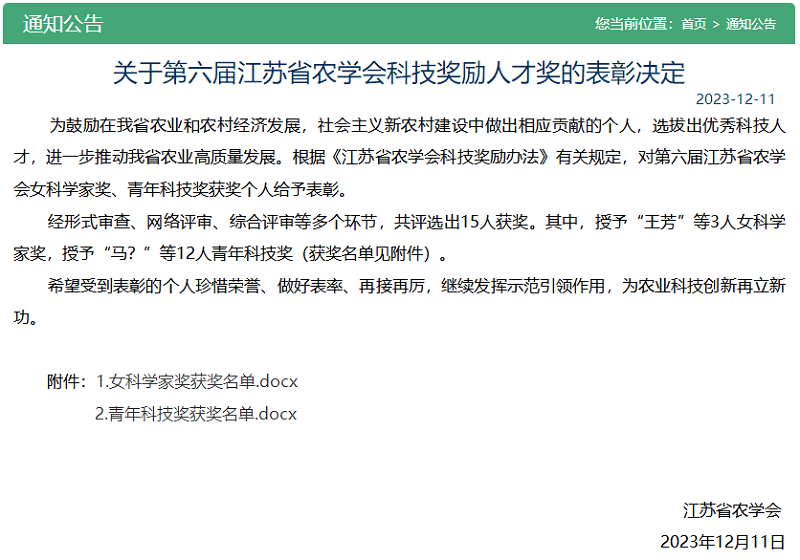 喜訊+!蘇墾農發2項成果獲江蘇省農學會科技獎勵成果獎、1人獲科技獎勵人才獎