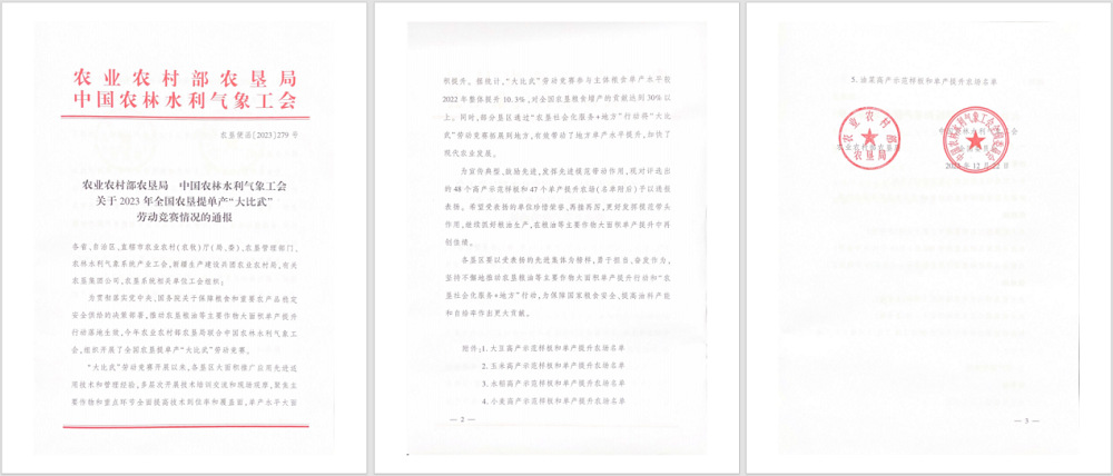 近日,農(nóng)業(yè)農(nóng)村部農(nóng)墾局聯(lián)合中國(guó)農(nóng)林水利氣象工會(huì)公布了2023年全國(guó)農(nóng)墾提單產(chǎn)“大比武”勞動(dòng)競(jìng)賽結(jié)果,經(jīng)測(cè)產(chǎn)驗(yàn)收、綜合評(píng)審,共評(píng)選出48個(gè)高產(chǎn)示范樣板和47個(gè)單產(chǎn)提升農(nóng)場(chǎng)。蘇墾農(nóng)發(fā)6個(gè)示范田入選高產(chǎn)示范樣板、3家分公司入選單產(chǎn)提升農(nóng)場(chǎng)。