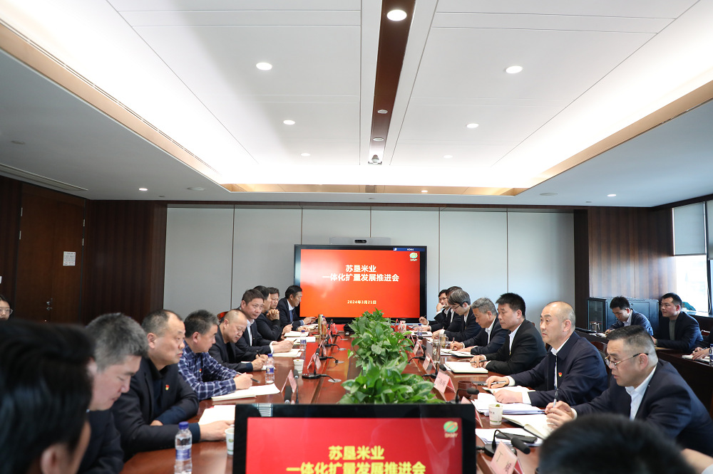 3月21日,蘇墾米業(yè)在總部召開一體化擴量發(fā)展推進會。會上10家分子公司就當前一體化擴量糧食回購工作做了詳細匯報。公司一體化領導小組成員等相關人員出席會議。