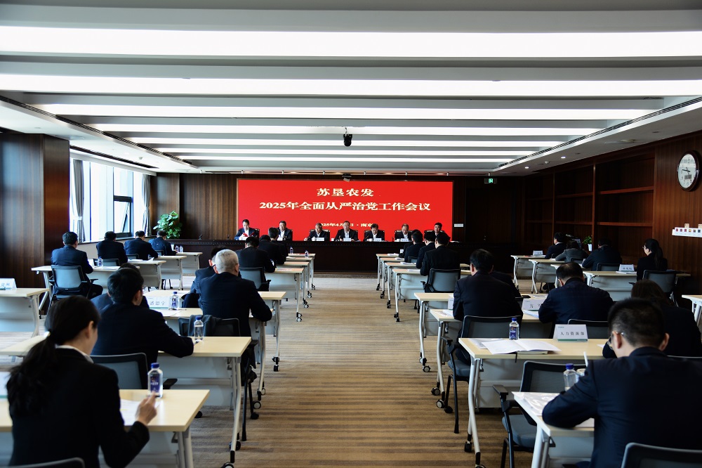 4月3日,蘇墾農(nóng)發(fā)召開2025年全面從嚴(yán)治黨工作會議,貫徹落實(shí)江蘇農(nóng)墾全面從嚴(yán)治黨工作會議暨警示教育大會部署要求,回顧總結(jié)2024年全面從嚴(yán)治黨工作,研究部署2025年重點(diǎn)任務(wù)。